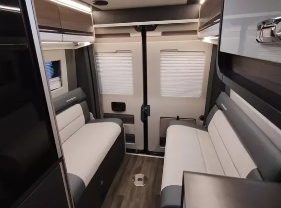 This particular camper is based on the Latest Fiat Ducato with a 2.2 litre, 140bhp engine and the 6 speed Manual gearbox. The cab air conditioning, cruise control, infotainment with full connectivity and Android Auto to enhance the driving pleasure.